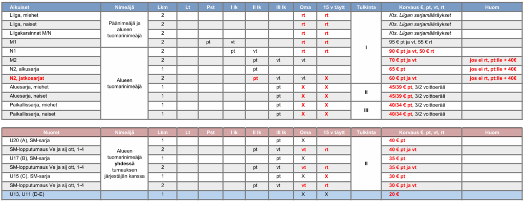 Tuomaripalkkiot kausi 2025-2026