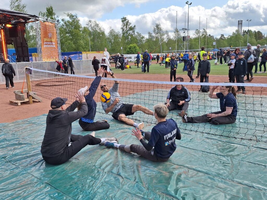 Oli hienoa päästä esittelemään istumalentopalloa näin isossa tapahtumassa. Power Cupilla on pitkät perineet, sillä tämä on 40-vuotisjuhlavuosi. Oli myös mukava nähdä entisiä maajoukkuepelaajia, jotka tulivat kanssamme hetkeksi pelaamaan, niin että saimme näyttää katsojille miltä peli parhaimmillaan näyttää. Pelaaminen sujui hyvän musiikin siivittämänä pääosin auringonpaisteessa, vaikka ajoittain kova tuuli nostatti ”hiekkamyrskyjä”, jotka takasivat että kotiin lähdettiin enemmän ja vähemmän pölyisinä.