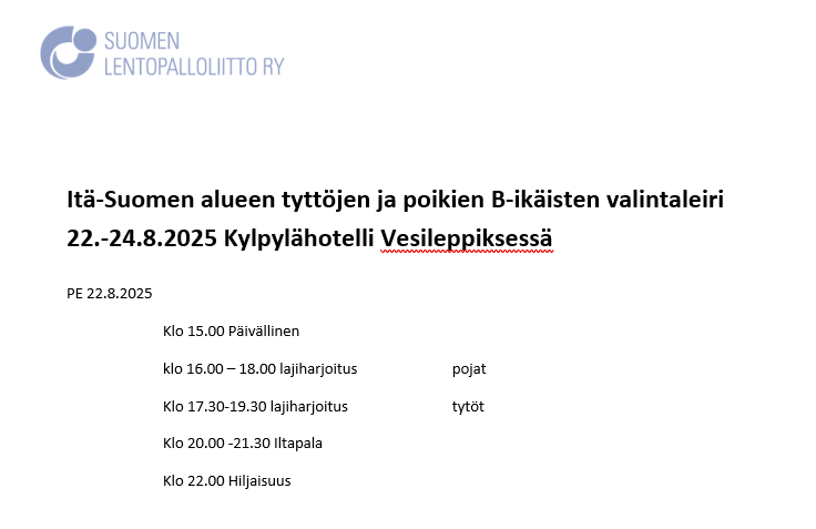 Valintaleirille kutsutaan seuraavat pelaajat