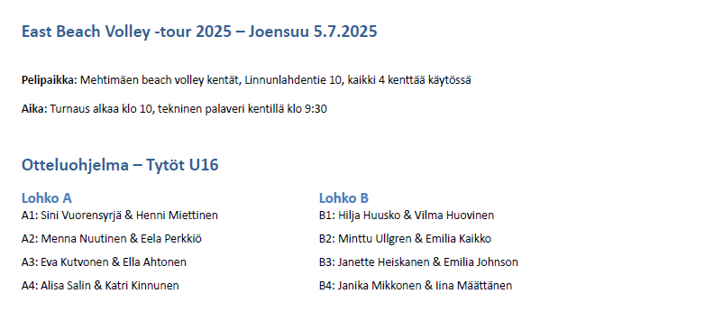 Viite: U16 beachvolley / sukunimi/sukunimi