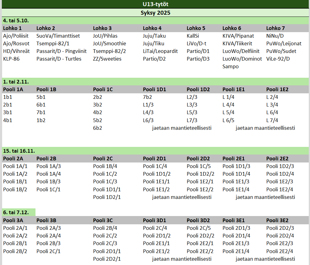 - U13(D)- ja U11(E)E-ikäisten sarjoissa on vapaa aloitus.