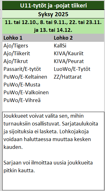 U11(E)-tytöt ja -pojat Tiikerisarja