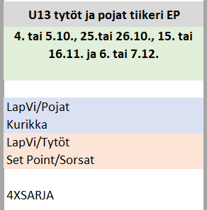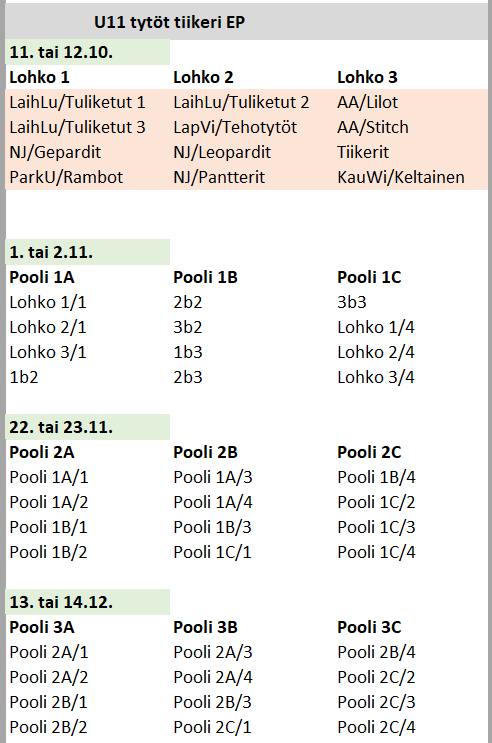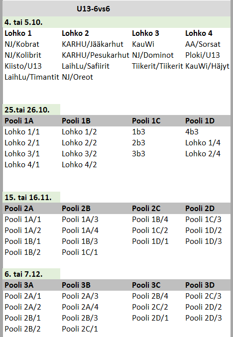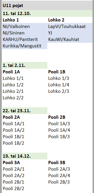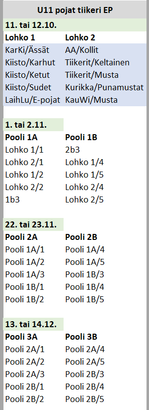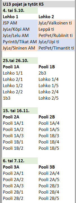 Keski-Suomen tytöt ja pojat, AM- ja Tiikerisarja pelaavat yhdessä, ohjelma poikien AM-sarjassa. Lohkossa 1 ja A-pooleissa pelataan minisäännöillä, lohkossa 2 ja B-pooleissa triplapalloa.